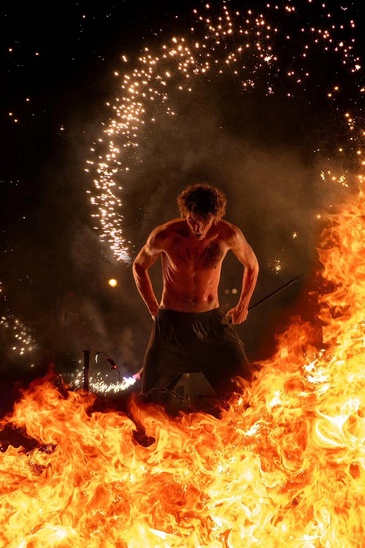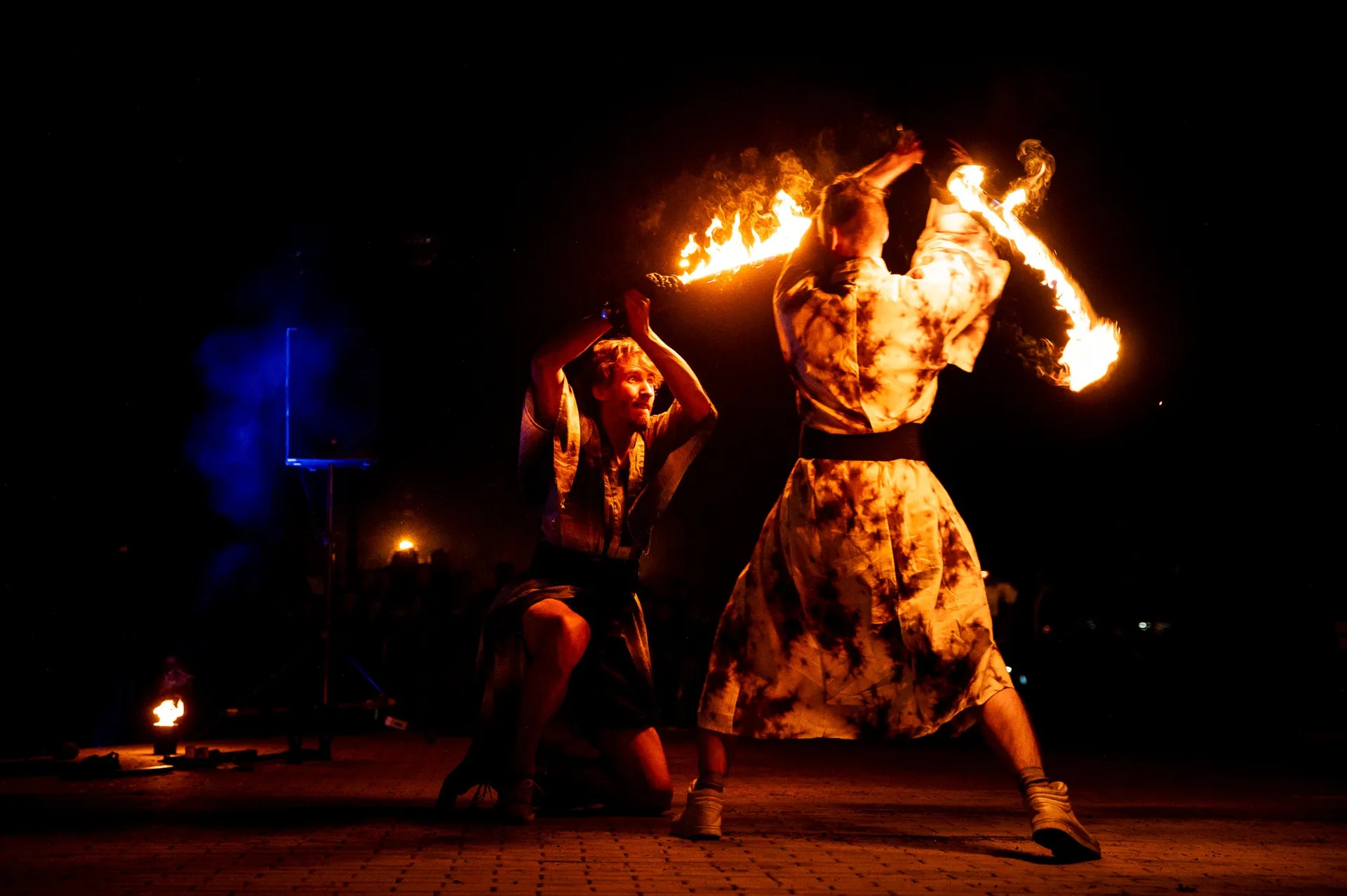 Pokaz premium w stylu japońskim, bogaty nie tylko w sztuczki kuglarskie i spektakularne rozwiązania pirotechniczne, ale też we wciągającą fabułę. By przenieść was do kraju kwitnącej wiśni, wystąpimy w tradycyjnych azjatyckich strojach do japońskiego podkładu i użyjemy płonących katan. Przedstawimy wam historię walki miłości o wolność, wcielimy się w role oprawcy, więźnia i gejszy. Jednak w Sota Fireshow to zawsze ogień gra pierwsze skrzypce. Kemuri nie należy tutaj do wyjątku, to właśnie w tym pokazie mnogość rekwizytów ogniowych i pirotechniki góruje ponad innymi przedstawieniami w naszej ofercie.