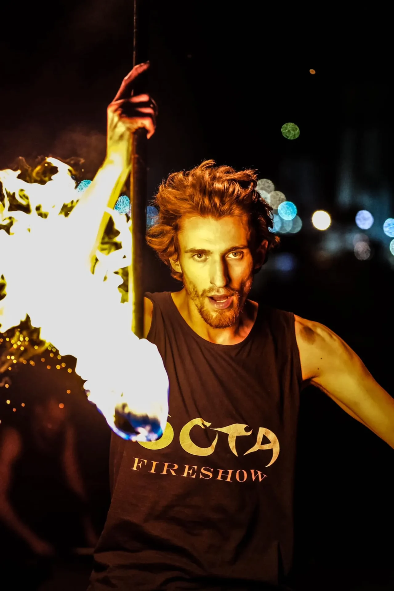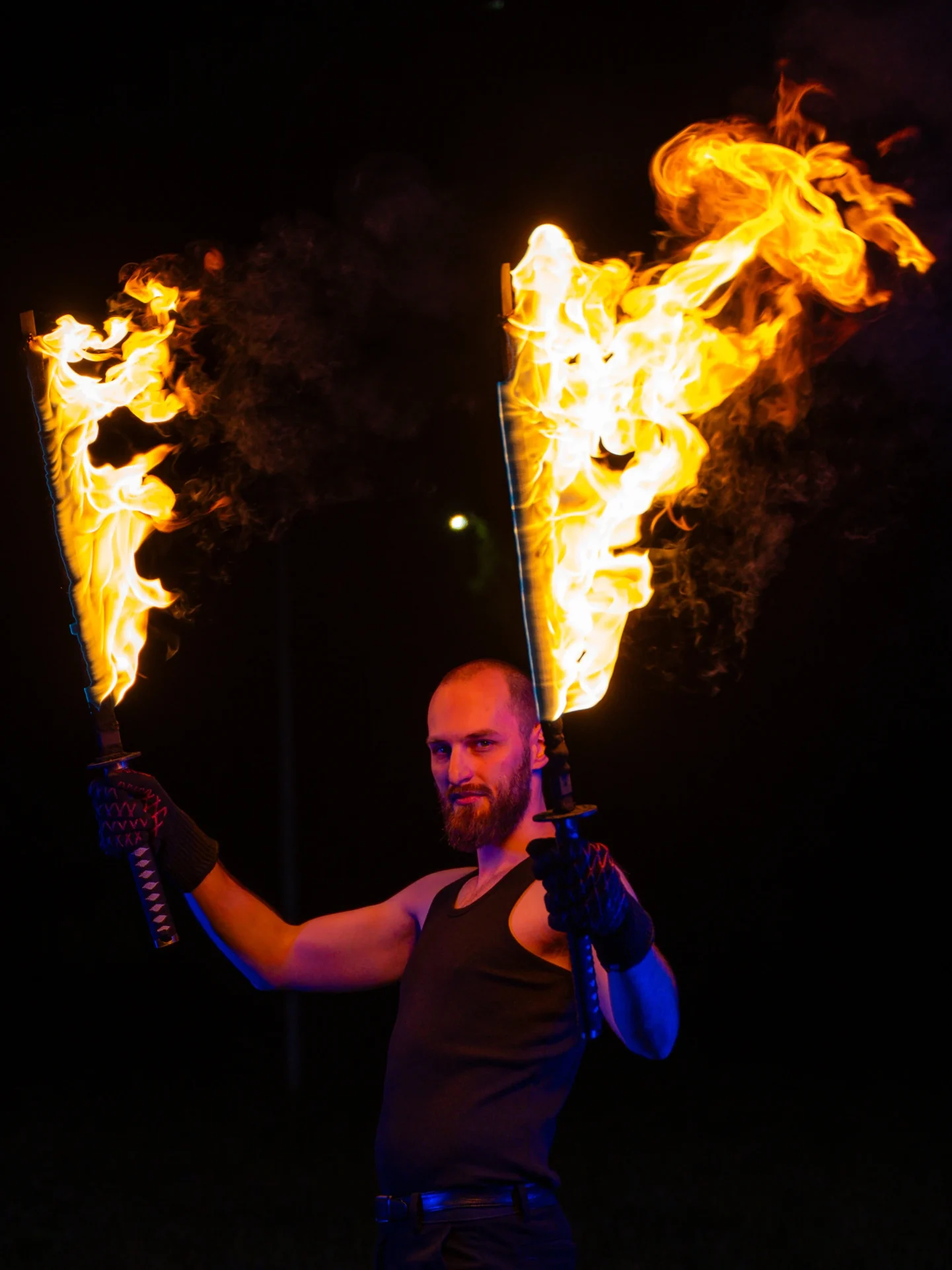 Bawimy naszych klientów efektownymi i pełnymi energii pokazami tańca oraz walk scenicznych z ogniem i pirotechniką. Ogień przybiera u nas tyle kształtów, ile mamy rekwizytów. Natalia zachwyca gracją w tańcu z wachlarzami, Radek imponuje mistrzowską precyzją w walce mieczami, a Maks hipnotyzuje prędkością w żonglerce kijami. Jesteśmy grupą fireshow z Gdańska i tworzymy widowiska w prawdziwym stylu teatru ognia, które zostają w pamięci na długo. Działamy przede wszystkim na Pomorzu, zwłaszcza w Trójmieście, ale przyjmujemy zlecenia na całą Polskę.